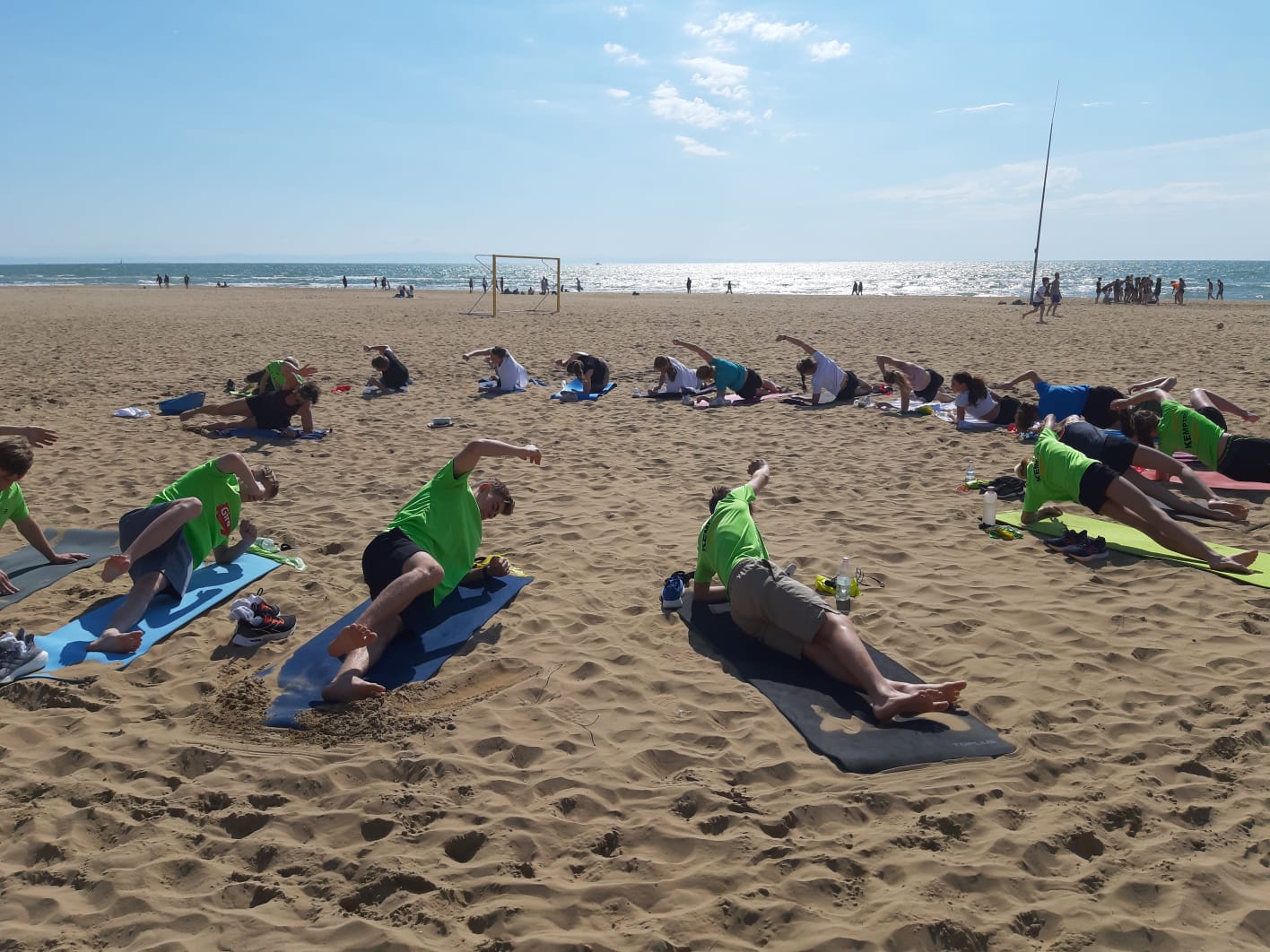 Schon am Abend des Anreisetages starteten wir das Trainingslager, gestärkt von dem ersten Pasta-haltigen Abendessen, mit einer zweistündigen Trainingseinheit auf der 50m Bahn, die sich gleich neben unserer Unterkunft befand. Danach wurden wir von der Betreuerin Birgit noch mit selbstgebackenem Kuchen versorgt, bevor es auch schon ins Bett ging. Morgens um acht begann der Tag mit einer Runde Laufen zusammen mit Britta und Birgit, der man sich freiwillig anschließen konnte, oder man traf sich am Strand zum Yoga. Doch gerade die Jüngeren des Teams waren froh um die zusätzliche Stunde Schlaf vor dem Frühstück um neun. Vormittags trafen wir uns auf einem nahegelegenen Fußballplatz zum Athletiktraining, welches ebenfalls Birgit übernommen hatte. Vor dem Mittagessen stand dann nur noch die erste Schwimmeinheit des Tages auf dem Programm. Die Nachmittage haben wir immer am Strand verbracht, um gemeinsam Volleyball oder Fußball zu spielen, Musik zu hören oder um sich auszuruhen. An einem besonders warmen Tag haben wir uns mit Brittas Einverständnis (sie fürchtete oft eine Erkältungswelle unter ihren Schwimmern, die sich bei Wind und Wetter in die Fluten stürzen wollten J) ins Meer gewagt. Dann, nach dem Abendessen, waren alle gespannt auf die zweite Wassereinheit des Tages, welche uns noch einmal alles abverlangte. Doch Britta wäre nicht Britta, wenn sie uns nicht immer und immer wieder aufs neue motiviert hätte und so hatte man Spaß daran, jedes noch so harte Training zu schwimmen.