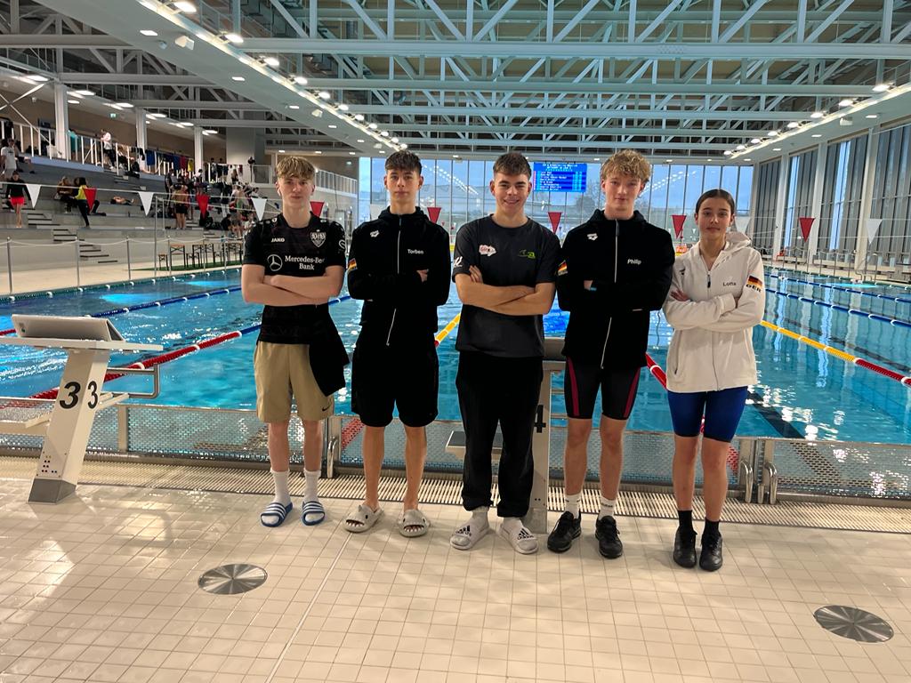 Stuttgart/Kempten Ein auserwählter Kreis der Wettkampfgruppe 1 der Schwimmabteilung des TV Kempten machte sich am vergangenen Sonntag auf den Weg nach Stuttgart ins hochmoderne „Sportpark NeckarBad“, um an der „3. Trophy-Plus“ teilzunehmen. 31 Vereine waren am Start. Der Wettkampf wurde ausschließlich als „offene Wertung“ ausgetragen (alle Jahrgänge innerhalb einer Wertungsklasse). Nachdem der Wettkampf ohne zu Tapern aus der Vorbereitung heraus geschwommen wurde, sollte eine erste Standortbestimmung für die anstehenden großen Meisterschaften das ausgegebene Ziel des Trainerteams sein. Nachwuchsathletin Nina Schuster musste verletzungsbedingt kurzfristig passen. Rückenspezialist Torben Herrmann (Jahrgang 2009) bestätigte seine ansteigende Form mit 5 persönlichen Bestzeiten bei 5 Starts. Starke Resultate waren der 4. Platz auf 200 Meter Rücken sowie der 5. Platz im Vorlauf auf 100 Rücken. Im Finallauf über 100 Rücken glückte gar mit einem einwandfreien Lauf der Sprung aufs Podest mit Platz 3. Drei Vereinsrekorde über die Rücken-Strecken waren das i-Tüpfelchen. Ebenfalls aufs Podest schaffte es Lotta Naima Schnitzer (2008) mit dem 3. Platz über 200 Schmetterling. Platz 7 im Vorlauf über 100 Schmetterling und eine Verbesserung auf Platz 6 im Finale sowie ebenfalls Platz 6 über 50 Schmetterling im Finale rundeten ihr solides Ergebnis ab. Leo Fingerle (2008) gewann über 200 Brust und rangierte in den Vorläufen über 50 und 100 Brust jeweils auf dem zweiten Platz. In den Finals schlug Fingerle über 50 und 100 Brust jedoch als Erster an. Mit 30,89 sec auf 50 Brust toppte er die schwäbische Jahrgangsbestleistung deutlich. Auch Niklas Herrmann (2007) konnte mit seiner Leistung zufrieden sein, so verbesserte er seine 100 Brust Bestzeit mit einem guten 14. Platz um knapp eine Sekunde. Auch Platz 15 über 50 Brust lag im Soll und in seinem Leistungsspektrum. Zu zwei Finalläufen konnte sich Philip Fröhlich (2006) qualifizieren. Einen davon gewann er über 100 Rücken. Platz zwei sprang über 50 Rücken heraus. Hier hatte er im Vorlauf noch auf Platz 4 gelegen. Bestzeit schwamm Fröhlich über 50 Freistil. Insgesamt brachte die kleine Kemptener Auswahl 4 Mal Gold, 1 Mal Silber und 2 Mal Bronze mit nach Hause ins Allgäu zurück und dies garniert mit zusätzlichen Prämien. (jf) © Autor: Jochen Fingerle |